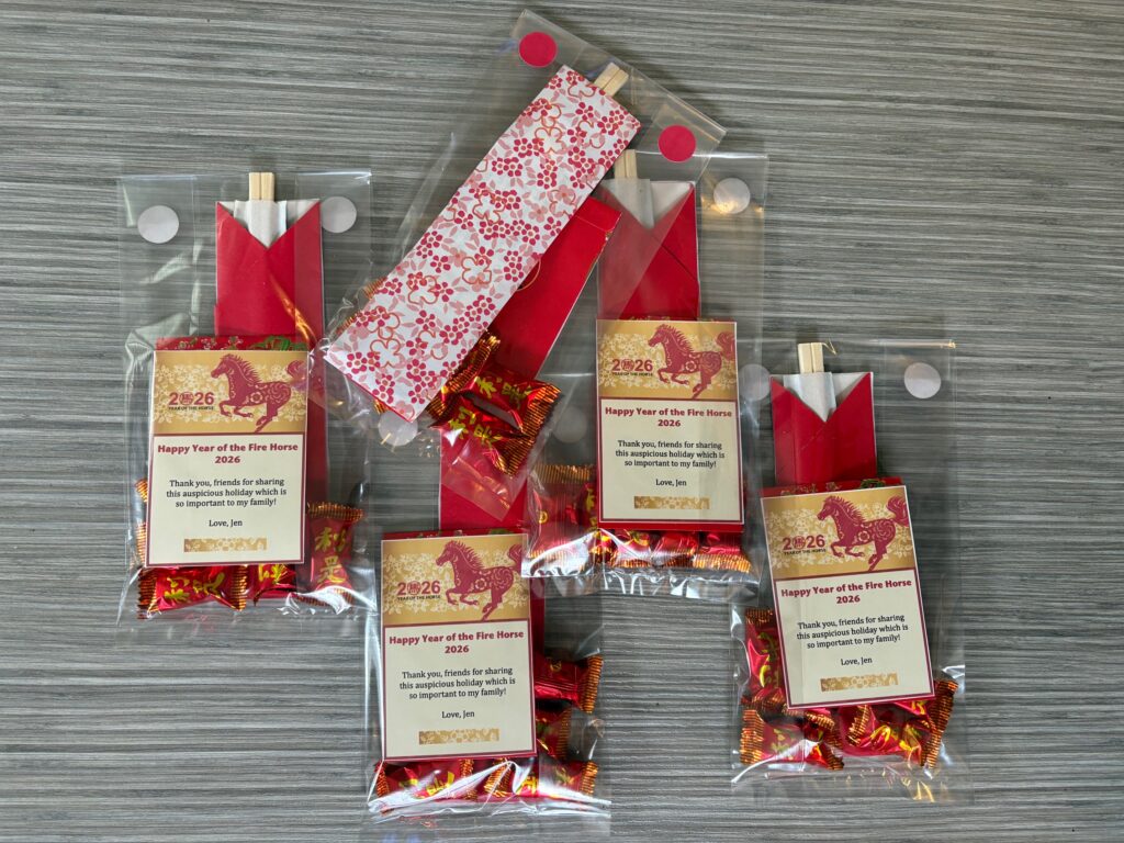 Lunar New Year festivities for the Year of the Horse 马 began with my annual Chinese dinner. Each year I try to up my game, refine the details (not being a natural host or chef), and just enjoy the company of my wonderful friends as I share the traditions of the holiday. Decorations, party favors, a festive table setting, dumplings….. and thank goodness, no snowstorm.